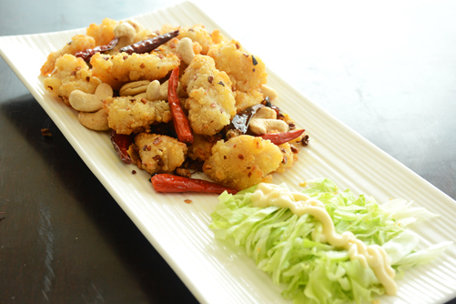 - 材料: 圣農(nóng)鹽酥雞1包 干紅辣椒15個 大蒜瓣3個 生姜4片 腰果20個 花椒3茶匙 食用油2茶匙 步驟: 干紅辣椒切丁,蒜瓣、生姜切末 鹽酥雞炸好備用 將蒜蓉、姜末倒入中火油鍋煸香,然后放入辣椒丁、花椒 放入圣農(nóng)鹽酥雞、腰果,翻炒片刻即可出鍋