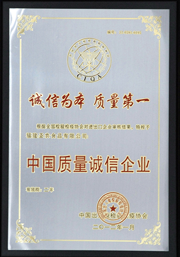 2014年8月(食品)2012-2013年度南平市納稅信用A級單位